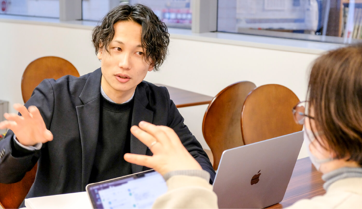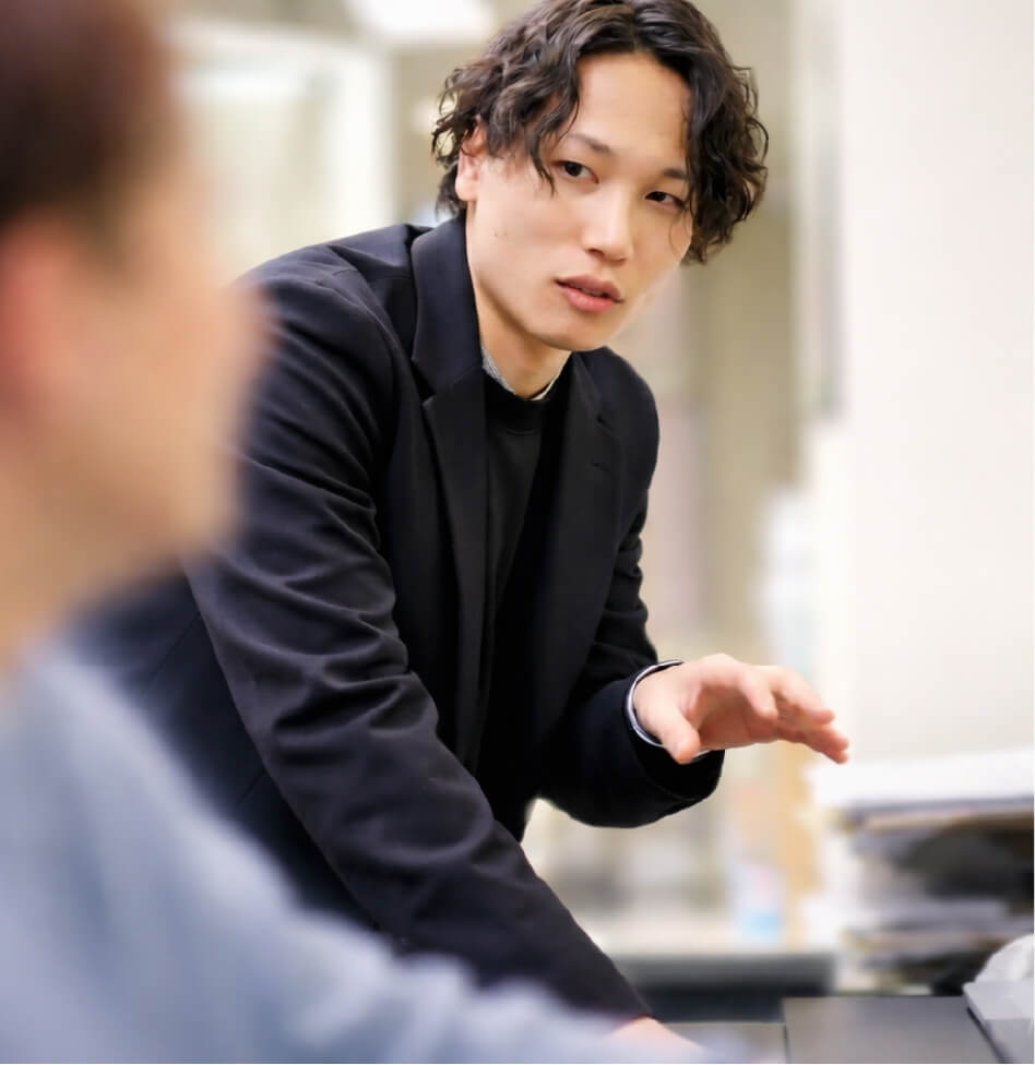 ディレクターとしてお客様のもとに出向き、企画のアイデアやプランを立てたり、ブランド構築に関するサポートをしています。ご依頼の先にあるゴールは何なのかを明確にすることで制作物や企画内容が見えてきます。また、お客様と練り上げた企画をデザイナーに制作してもらうための設計図づくりや、校正のやりとりもディレクターの仕事です。デザイン経験のあるディレクターは、案件によっては自分でデザインまで行う場合もあります。私たちディレクターの仕事は、一つの案件に対してお客様と社内、双方の手繋ぎ役であり、スケジュール管理なども含めた全体を見通す力が大切です。